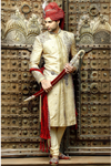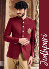 Cream & Maroon Self Brocade Dhoti Kurta for Men