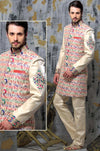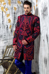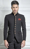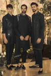 Black Raw Silk Heavy Embroidered Partywear Pathani for Men