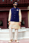 Blue Brocade Dhoti Kurta with Emerald Green Velvet Dhoti