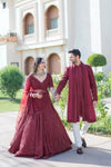 Black Cot Silk Kurta Pyjama with Maroon Resham Embroidery