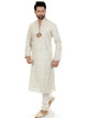 Ferozi Blue Cot Silk Kurta with White Contrast Embroidery