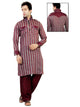 Brown Poly Cotton Pathani Kurta with Vertical Print Lines