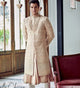 Beige Silk Sherwani with Dense Resham Embroidery & Mirror Highlights