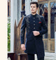 Elevate your wedding wardrobe with this teal green Indo Western crafted in premium imported polyester blend. The intricately patterned texture and sharp tailoring offer a perfect fusion of Indian tradition and Western sophistication. Styled for the modern groom and his close circle, this Indo Western ensures you make a bold and regal statement at every celebration. Pair it with matching trousers and polished shoes for a complete royal look.