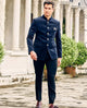 Turn every head at the celebration with this black suede Jodhpuri Suit, highlighted by exquisite sequins handwork on the shoulders. A sophisticated pick for weddings, receptions, and parties, this outfit is the ultimate statement of charm for the Groom and his close circle.