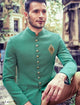 Step into timeless sophistication with this Black Suede Jodhpuri Suit featuring subtle crystal embroidery and a striking red pocket hanky. Perfect for weddings, receptions, and royal celebrations. Shop now at BharatPlaza.com to elevate your style!
