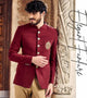 Make a bold statement with this maroon Suede Polyester Blazer, styled like a hunter coat with four functional pockets. Designed for men who appreciate a mix of vintage charm and modern elegance, this blazer enhances your royal personality. Ideal for cocktail parties, receptions, and wedding celebrations, it pairs effortlessly with denim or formal trousers. Complete with button detailing and a sharp tailored fit, this blazer adds confidence and sophistication to your wardrobe.